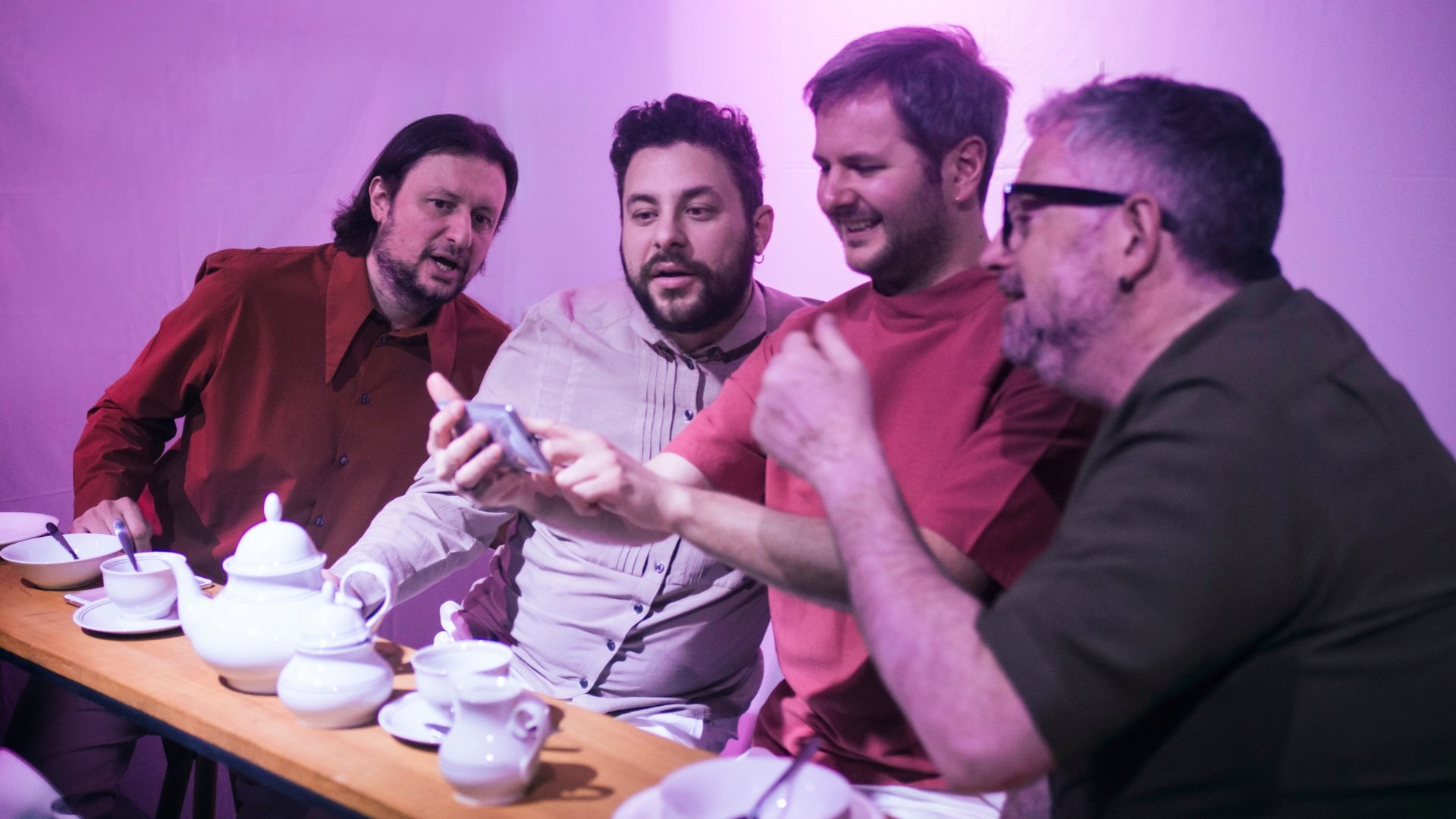 Il teatro per noi è un mezzo, non un fine; lo utilizziamo come filtro per parlare di ciò che ci preme, siano essi temi sociali, politici, intimi. Abbracciamo i princìpi del “teatro poetico”: uno stile di teatro che fa poesia di immagini, dove nessun elemento in scena è mai puramente decorativo. La scena è chiusa in uno spazio di 2,5 x 1,5. Il bancone di una caffetteria e quattro sgabelli. Tazzine, piattini, posate. Consumano le loro colazioni in una azione conviviale perenne, e lo spazio diventa caffetteria, ma anche vetrina, teca, gabbia, trappola.