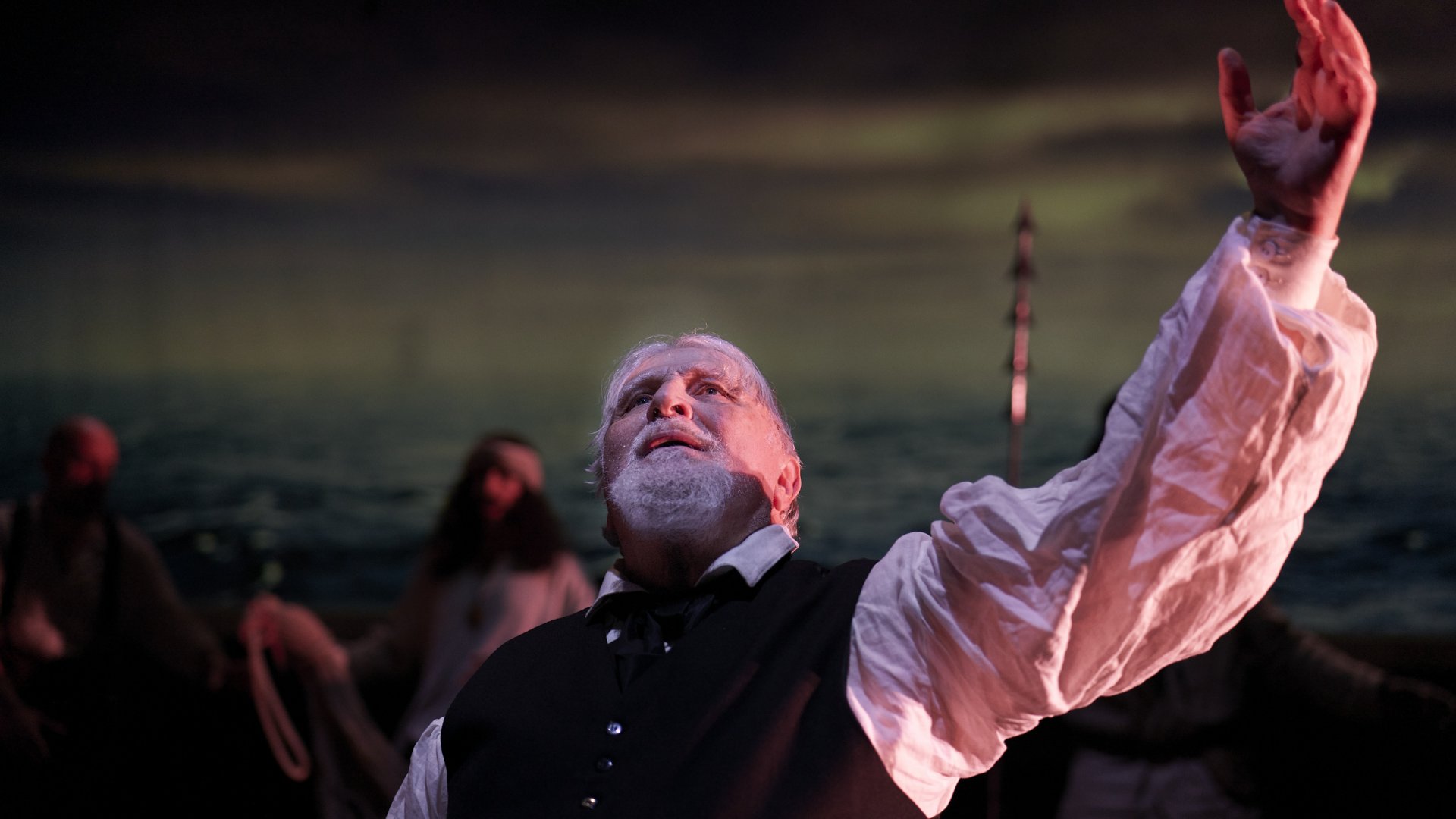 In questo Moby Dick diretto da Guglielmo Ferro, che vede in Moni Ovadia lo straordinario protagonista, la narrazione teatrale inizia sul Pequod, dove si consumerà la tragedia di tutti i personaggi – Queequeg, Pip, Ismaele, Lana caprina, Tashtego, Flask, Daggoo, Stubb, Fedallah – in un susseguirsi frenetico di tempeste, battute di caccia, avvistamenti, bonacce, canti, riti pagani e preghiere. E se nella ricerca maniacale di Moby Dick è la follia a guidare il capitano Achab, è sul piano del conflitto umano contro Starbuck che Achab conosce l’orrore: la parte recondita della sua stessa coscienza. La malattia di Achab è Moby Dick, ma Starbuck ne è la manifestazione clinica. Moby Dick gli fa male con la sua “assenza” lì dove Starbuck lo fa con la sua “presenza”.